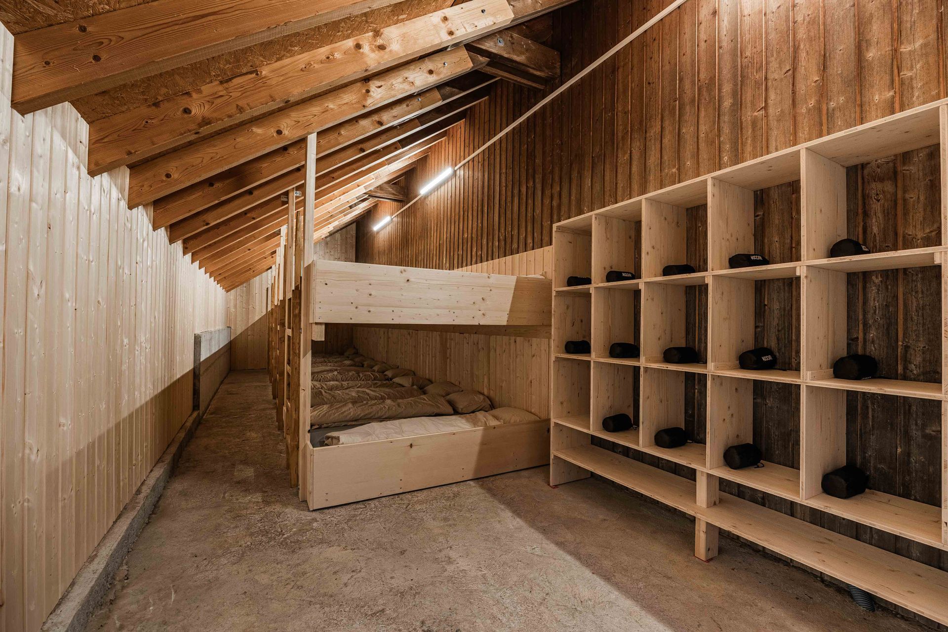 Unser Matratzenlager im sogenannten «Spycher» bietet Ihnen zwei Räume. Eine Räumlichkeit bietet 4 Schlafplätze in Form von zwei Hochbetten und eine Sitzmöglichkeit mit Tisch. Der zweite Raum bietet Platz für 6 Personen. Das Stöckli hat ein eigenes, kleines Badezimmer mit WC und Dusche und einen kleinen Vorraum mit Verstauungsmöglichkeiten.